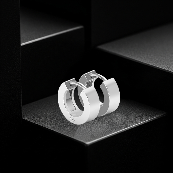 Add edge with bold, sleek platinum earrings for men — a contemporary classic for the modern man.